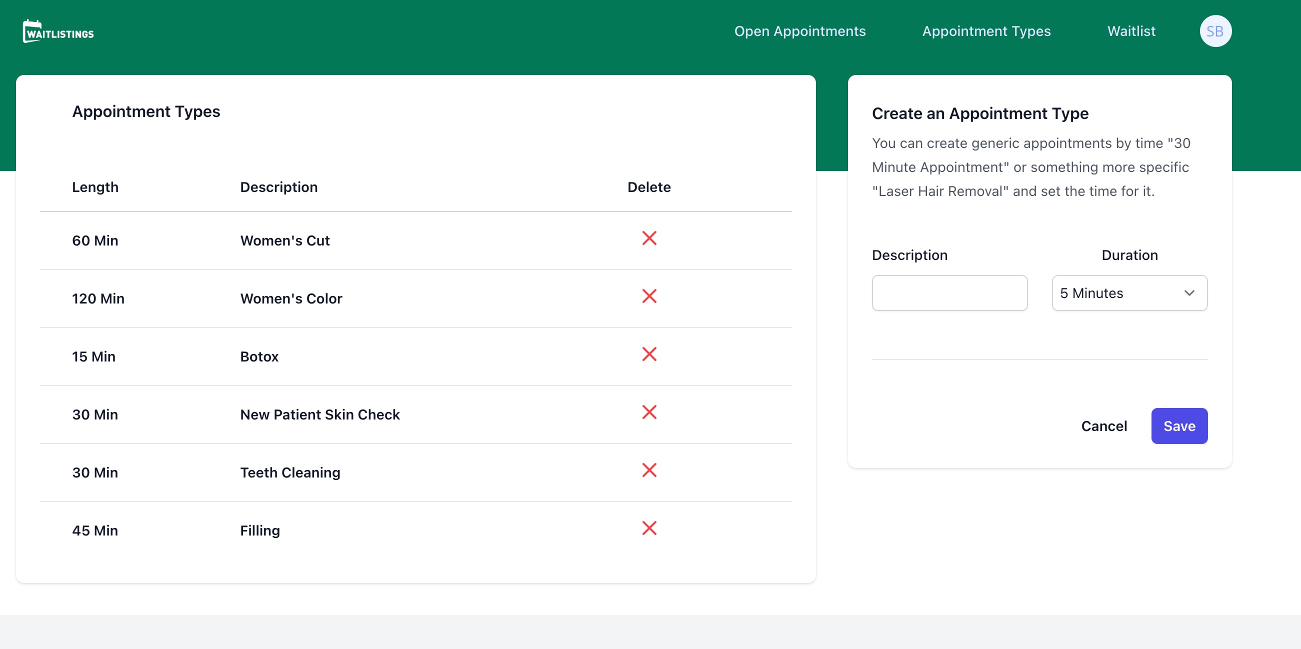 Join hundreds of clinics already using WaitListings to maximize every hour. It takes less than 5 minutes to set up.