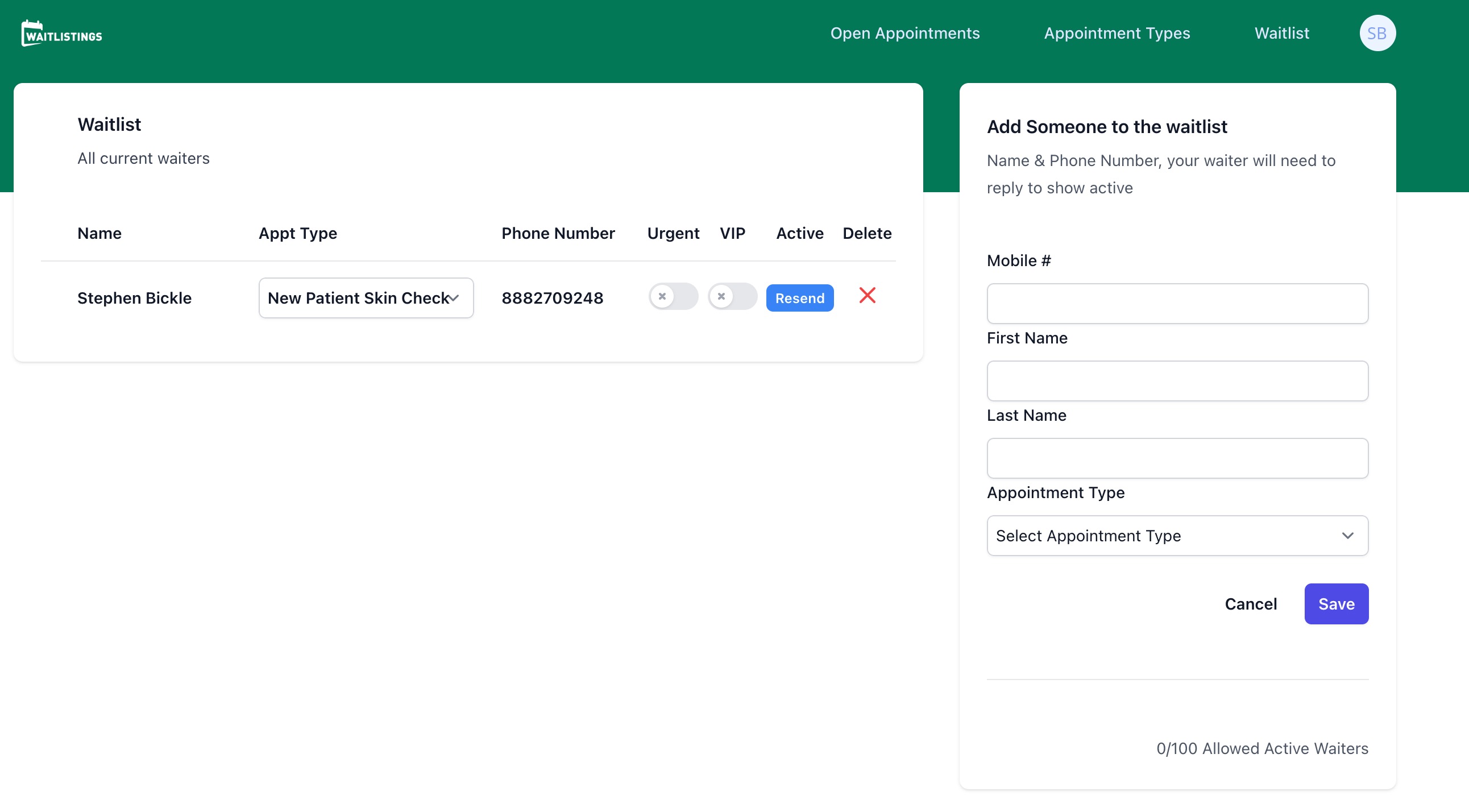 WaitListings fills empty time slots instantly by texting the right patients in the right order.
